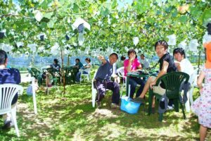 数あるブドウ園の中で、観光農園としてブドウ狩りの体験や直接購入ができるようにしている所も10以上あり、木曽方面から塩尻に行く国道19号を車で走るといくつか大きな看板と入口が見えます。