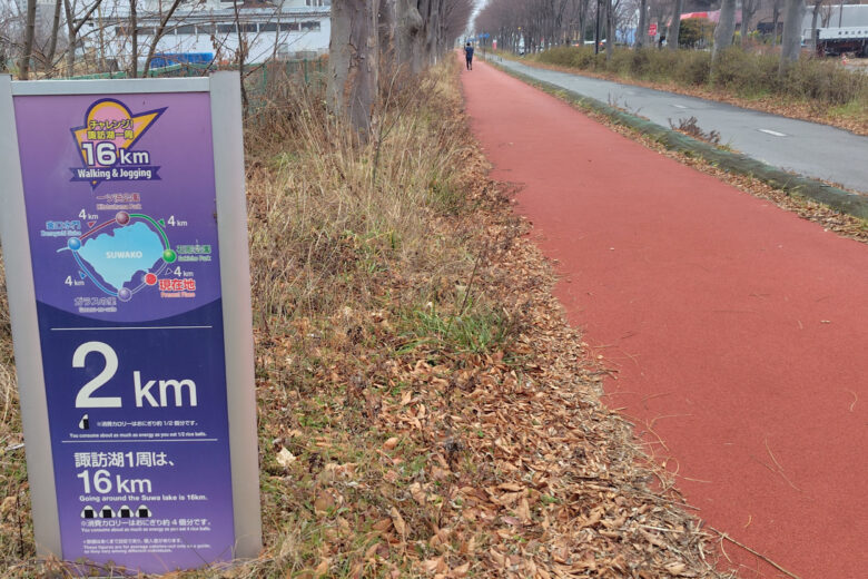 諏訪湖の周りには、自転車専用コースとウォーキング&ランニング専用コースがあり、はっきり分離しているのが素晴らしいです。