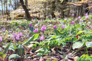 カタクリの他にもニリンソウやアズマチゲなどの山野草も咲きます。