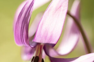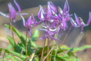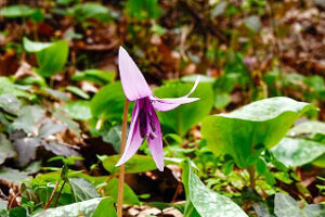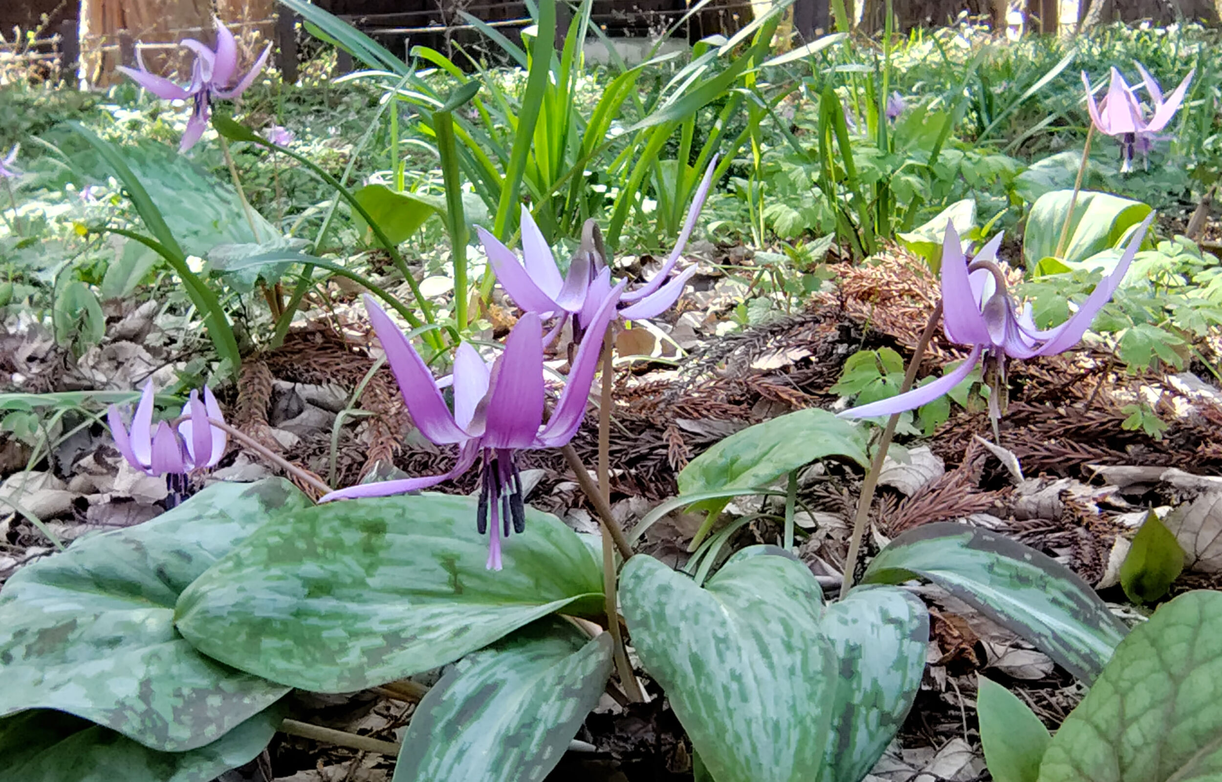 カタクリは、下を向いて咲く可憐な野草で、「早春の妖精」とも呼ばれます。信州のような寒冷地の山野に見られますが、山野の減少や乱獲で減っています。