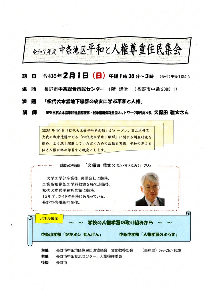 | 場所 | 北信/長野市 案内所:長野市中条支所 |
