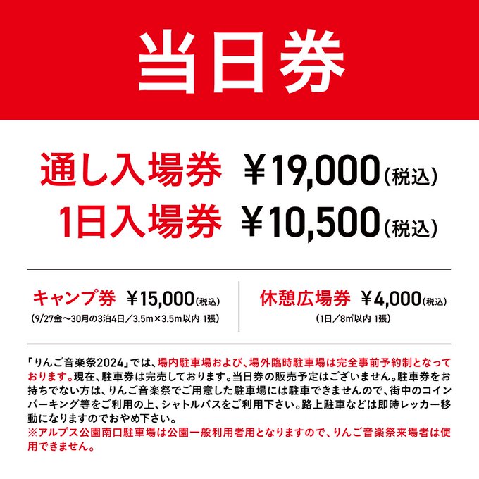 料金 | 1日券 7,500円。通し券、早割チケットもあり |