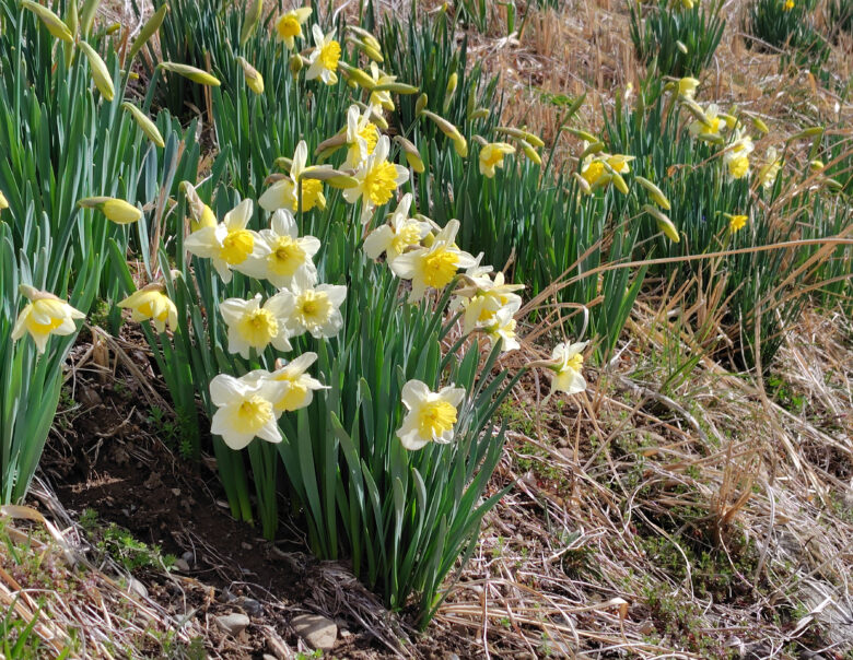 2番バッターの水仙。うちの近くの土手で今日咲き始めているのを発見。上田・信州国際音楽村のスイセンまつりはもう少し後の3/28から。