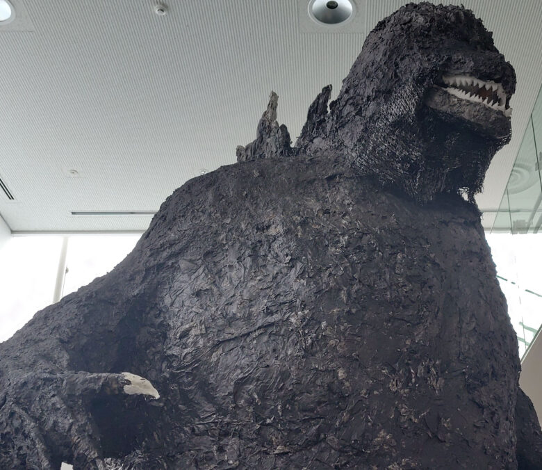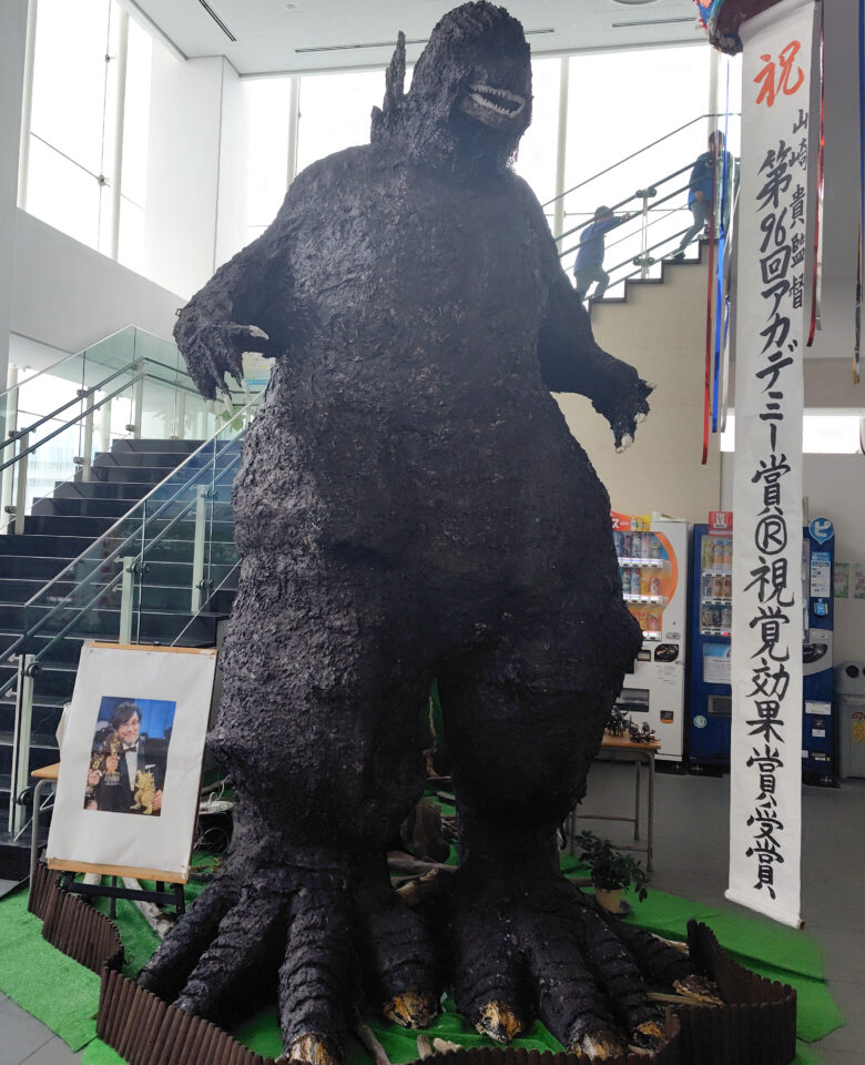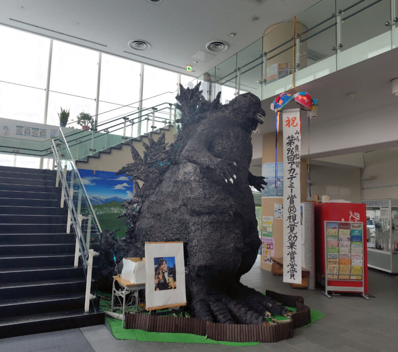 新聞に出ていた、松本の「ゆめひろば庄内」に展示されているゴジラ像。