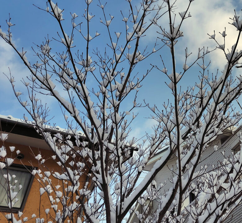 今回も雪かきをするほどではなく、夜までには溶けて、楽でした。