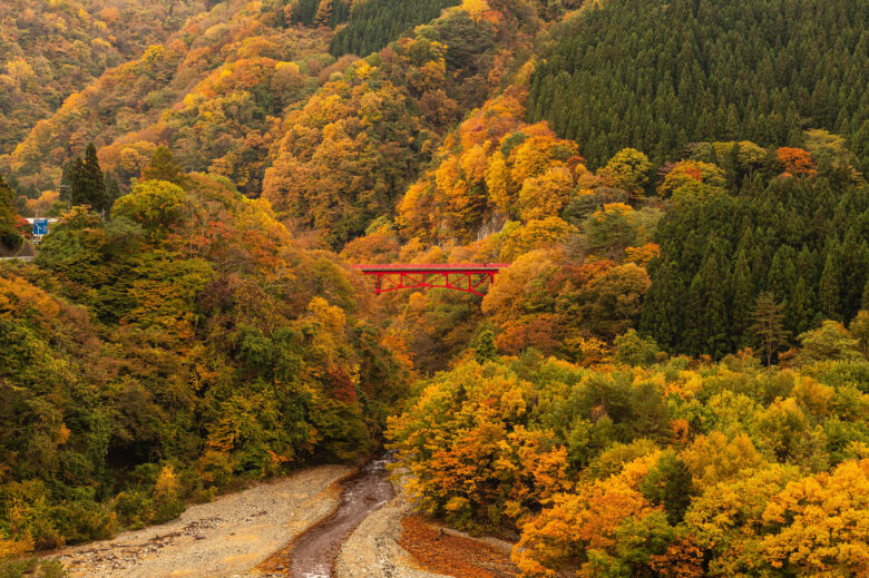 - 長野県内イチオシの紅葉の名所 松川渓谷 山田温泉大橋の例年の紅葉2025.10.05