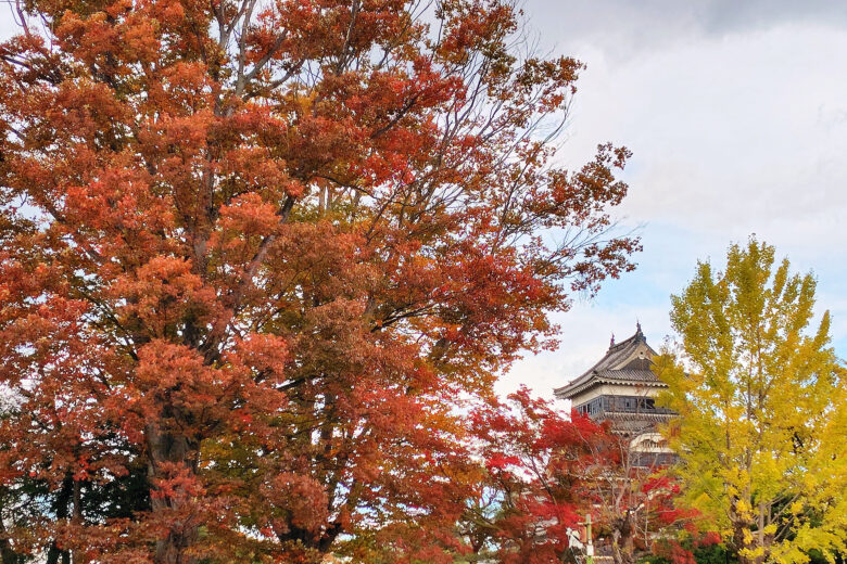 松本城の大ケヤキとイチョウの紅葉(11/1)2025.11.02各地で11月上中旬が見頃!里に下りてきた今年の紅葉